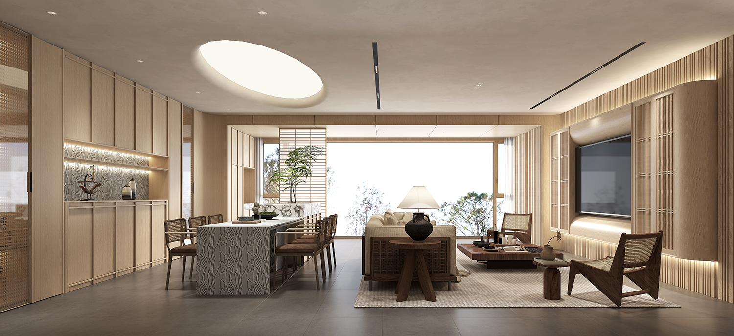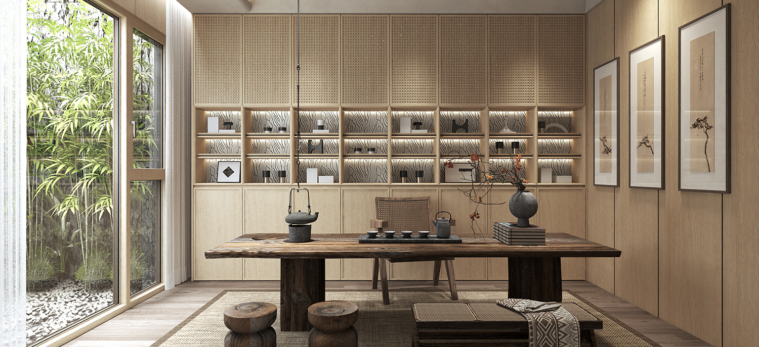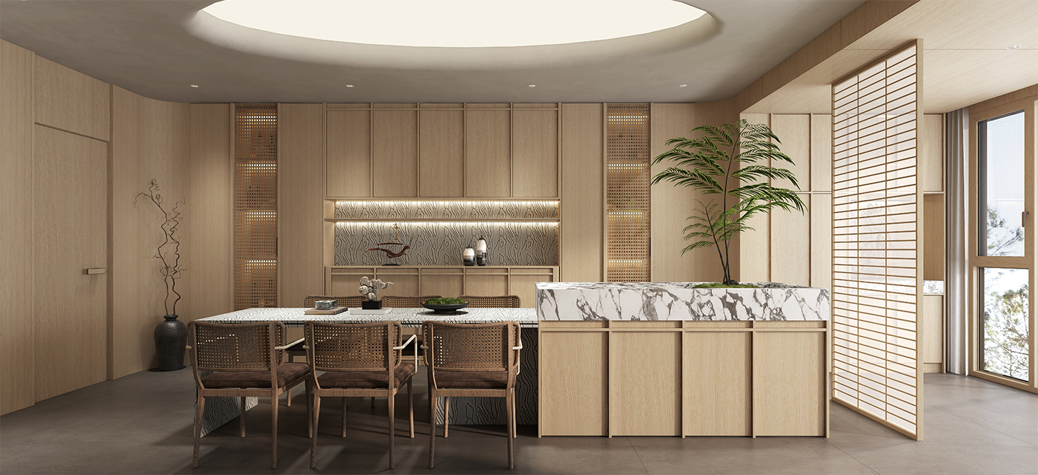 按幔系列的设计理念源自于世界着名的安缦酒店,将东方的宁静与西方的精致完美融合。每一件家具,每一扇门窗都承载着对自然与和造的深刻理解。