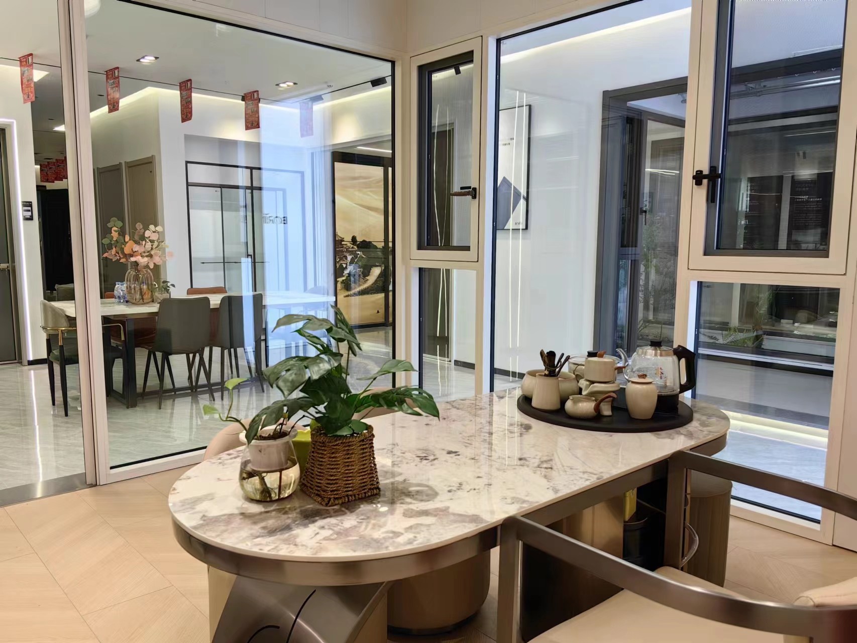 以“家的温度”为核心,讲述着人与空间的情感故事。清晨,阳光透过玻璃窗洒在大理石圆桌上,绿植与茶具静静守候,仿佛在等待一家人的欢聚。推开门的瞬间,空间的通透与明亮带来一天的好心情。夜晚,灯光柔和地亮起,一家人围坐桌旁,分享一天的趣事,这里不仅是用餐的地方,更是情感交流的港湾。每一处设计细节都在默默诉说:家,是温暖的归属,是疲惫心灵的休憩所。