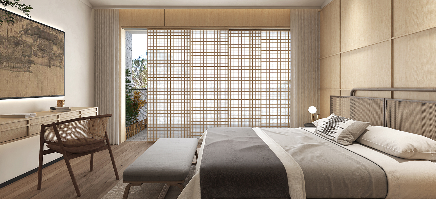 按幔系列的设计理念源自于世界着名的安缦酒店,将东方的宁静与西方的精致完美融合。每一件家具,每一扇门窗都承载着对自然与和造的深刻理解。